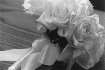 Créase o no, este elegante ramo de flores fue hecho por la misma novia usando flores de seda. El ramo de la novia consistió de una combinación de pimpollos de rosa color crema y rosas. La novia comenzó con una rosa en el medio, rodeada por una hilera de pimpollos, atados usando hilo floral, luego, una hilera final de pimpollos de rosa formaban la capa exterior, tambien sujetada con cinta e hilo floral. Para el toque final, la novia envolvió los tallos en cinta satinada blanca, usando alfileres con cabeza de perla para sujetar la cinta. Un lazo separado fue también agregado al ramo usando hilo. Los ramos de las madrinas de boda fueron hechos usando las mismas técnicas utilizadas para el ramo de la novia, pero utilizando sólo pimpollos de rosa. Todas las flores fueron aseguradas a sus tallos con cemento antes de utilizarlas.