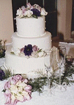 Esta torta de boda es de chocolate con relleno de frambuesas y moka en las dos primeras capas y torta de zanahorias con relleno de queso cremoso en la capa superior. La torta está cubierta con una capa de dulce de caramelo.
